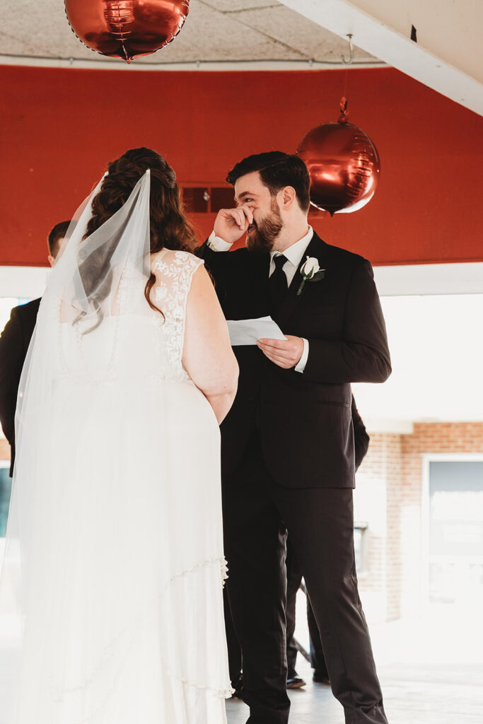 Alora and Bill were married in an open-air pavilion hung with red balloons and string lights. They stood in front of a white balloon arch with their closest friends beside them, and promised their forever to each other. Whenever I snuck a glance at the guests, everyone was smiling from ear to ear, and I felt that expression reflected on my own face.